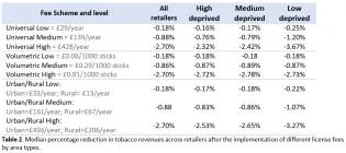 The Scottish Government has committed to achieving a smoke-free generation by 2034. This ambitious goal has sparked debate about which measures will drastically reduce tobacco use and sales of tobacco products. One option is the introduction of a tobacco license scheme. A new study in Scotland from the SPECTRUM team shows that the introduction of a tobacco license scheme has the potential to disincentivise tobacco sales and reduce the availability of tobacco products. In 2010, the Scottish Government introduced a registration system that was mandatory for businesses selling tobacco. However, there is no cost associated with registering to sell tobacco products. One option for helping to meet the smoke-free generation target is the introduction of a tobacco licensing scheme in Scotland. A tobacco retail license is a regulatory mechanism that requires retailers to purchase a special license to legally sell tobacco products. Tobacco license schemes are crucial for monitoring sales of tobacco products, reducing illicit sales, and enforcing regulations such as sales prohibition to minors. By charging fees to obtain a license can increase the cost of selling tobacco, making the product more expensive for consumers and less profitable for retailers. Consequently, this can lead to reduced tobacco product availability as retailers may choose to diversify their business models away from tobacco. A tobacco retailer reduction has been widely associated with lower smoking prevalence and fewer tobacco-attributable diseases. However, the implementation of license fees has faced challenges from retailers and the tobacco industry, who raise concerns about their impact on business profitability. Retailers also provide essential local services and if the introduction of a tobacco license fee undermines the viability of the business, then this could negatively impact local communities. Therefore, the public health benefits of fee-based license systems that reduces tobacco availability have to be considered against the potential financial impacts on retailers. Although many countries worldwide have considered different forms of license schemes, little is known about the effectiveness of these different schemes in disincentivising tobacco sales and their financial impacts on retailers. Simulating the implementation of a tobacco license fee in Scotland: a case of study As part of the SPECTRUM Consortium we addressed this question by analysing data from over one million commercial transactions across 179 smaller retailers (convenience stores) in Scotland between 2019 and 2022. We found that stores generate an annual median of £15,859 revenue from tobacco sales. Retailers in the most deprived areas of Scotland received 1.6 times more revenue than those in low-deprivation neighbourhoods. Moreover, urban retailers obtained 2.3 times higher revenues than rural stores (see table 1 below). The research also examined the financial impacts of different types of tobacco license fee schemes on retailers. Three approaches were studied: a universal flat fee, a volumetric fee based on total tobacco sales in the store, and separate flat fees for urban and rural retailers. Different fee levels were tested within each scheme. We found that the magnitude of the financial impacts of schemes on Scottish retailers varied in relation to the level at which the fee was set. For instance, adopting a low license fee similar to the one operating in New Brunswick, Canada, (a universal fee of CA$50/year, approximately £29/year), would result in a median tobacco revenue reduction of 0.18% among retailers in Scotland. However, if following Finland's example of requiring a universal fee of €500/year (approximately £428/year) smaller retailers in Scotland would see their revenues reduced by 2.70% (see table 2 below). In both cases, the impacts of these licenses’ fees may not deter tobacco sales. In order to achieve a significant revenues reduction, such as a 30% reduction, would require a universal fee to be set at £4,758/year, which is substantially higher than those currently active in other countries. Additionally, our results showed that each scheme type impacted differently on retailers located in different types of areas of the country. Universal and urban/rural flat fees would result in higher revenues reductions for retailers in low deprivation areas. Using a high-level universal fee (similar to Finland), results in a revenue reduction of 3.61% in low deprivation areas. This decline is more significant than the 2.70% reduction observed in high deprivation neighbourhoods. In contrast, volumetric schemes would lead to similar percent revenue reductions across all retailers. Implications for Tobacco Control policies These findings have implications for how we develop our approach to reducing tobacco harms in Scotland. Our study showed the potential of license fee schemes to disincentivise tobacco sales as they effectively increase the cost of selling tobacco. However, to significantly impact tobacco revenues and encourage retailers to diversify their business models away from tobacco sales, this policy would necessitate the implementation of relatively high-level fees. The study described unequal financial impacts from each license scheme among retailers. The effectiveness of universal and urban/rural flat fees to reduce tobacco outlet availability could be questioned, as they would have a lower impact on retailers in high deprivation areas. These areas are typically targeted in tobacco control efforts since they present the highest densities of tobacco retailers and the worst smoking outcomes. In contrast, volumetric fees could ensure an equal reduction of tobacco revenues across all retailers. Nevertheless, retailers with greater sales volume, more diversified business models (large retailers and supermarkets) or located in more profitable neighbourhoods (ie, urban areas) might have greater financial resources to cope with a gi